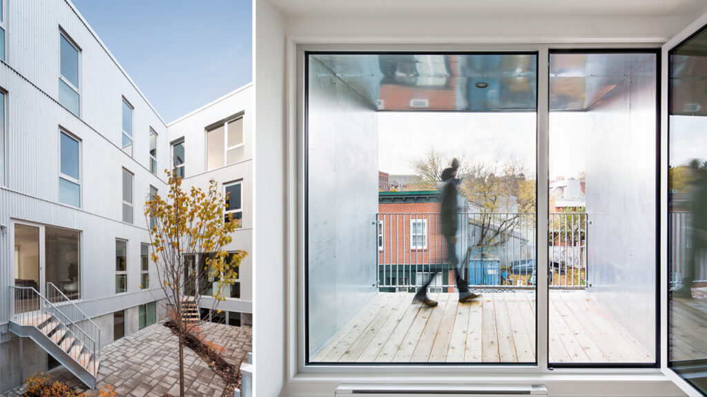 Le projet adresse la question de la réintégration de la famille en milieu urbain. Pour cela, les unités s’organisent spatialement sur 2 niveaux séparant physiquement la zone de jour de la zone de nuit. La plupart des unités comprennent 2 et 3 chambres afin de satisfaire les besoins des familles. Les superficies des unités varient entre 868 pi.ca. à 1 700 pi.ca. Toutes les unités bénéficient d’un accès et d’un lien visuel à une cour intérieure centrale permettant de vastes entrées de lumière en plus de créer un lieu communautaire convivial. Chaque unité possède un espace extérieur privé (balcon ou terrasse) et une entrée privée. L’ensemble des unités, de type traversant, sont conçues de manière à ce que la lumière naturelle puisse immerger tous les espaces intérieurs.