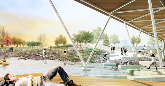 « En appelant à redonner l’accès au fleuve Saint-Laurent aux citoyens de Montréal, le concours de design de la plage de l’Est a mis en évidence la complexité de l’affirmation d’un geste architectural intégré au paysage, par delà l’intention de retisser des liens entre le fleuve et la communauté. La complémentarité des interventions entre architectes et architectes paysagistes s’est avérée un élément décisif pour la sélection des lauréats et certaines propositions ont démontré une sensibilité inédite.