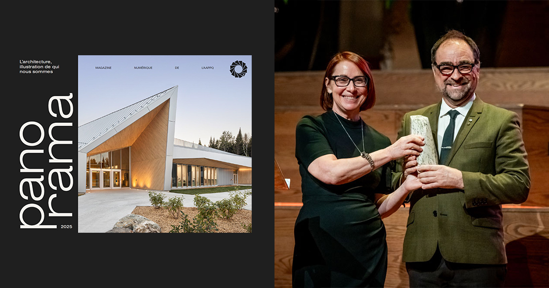 À cette occasion, l’Association des architectes en pratique privée du Québec (AAPPQ) a décerné le titre de membre honorifique 2025 à Michel Rabagliati qui témoigne, dans son oeuvre, de l’architecture propre au Québec, et a dévoilé les 25 projets architecturaux mis en lumière dans Panorama.