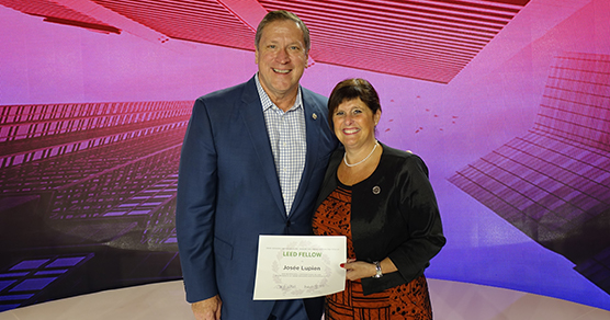 « Montréal, le 6 octobre 2016 – C’est lors du gala de reconnaissance tenu dans le cadre de la conférence internationale Greenbuild de Los Angeles que Josée Lupien – LEED AP BD+C & ID+C – s’est vue décerner le statut de LEED Fellow. Ce titre est la plus prestigieuse distinction dans l’industrie du bâtiment durable.