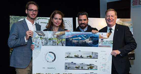 « Laval, le 18 janvier 2017 — C’est lors du conseil municipal du 17 janvier que Marc Demers, maire de Laval, a annoncé le lauréat du concours d’architecture pluridisciplinaire du futur complexe aquatique : le consortium NFOE-HCMA. L’équipe sera chargée de la réalisation des plans et devis du bâtiment et de ses aménagements extérieurs, du suivi des travaux pendant la construction jusqu’à la mise en service des installations, prévue en 2020.