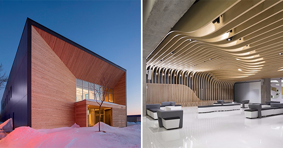 « Cecobois a récompensé 16 projets en bois d’exception à l’occasion de la cinquième édition du gala des Prix d’excellence Cecobois, qui s’est tenu au Palais Montcalm de Québec le jeudi 2 février dernier. En plus des 16 prix remis par le jury, 8 municipalités ont fait l’objet d’une reconnaissance spéciale pour leur engagement à utiliser le bois dans la construction de leurs bâtiments, et Cecobois a également souligné la contribution exceptionnelle de M. Jean-Claude Baudry, architecte chez Nordic Structure, et de M. Louis Poliquin, ancien directeur de Cecobois, à l’industrie des produits structuraux en bois et au développement des marchés pour ces produits en leur remettant un Prix Émérite. »