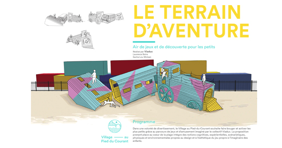 « Au cours des dernières années, le Village au Pied-du-Courant est devenu un incontournable dans l’écosystème culturel à Montréal. Bâti avec le soutien de la communauté et de nombreuses collaborations, le Village est une destination bouillonnante de créativité, d’expression et d’expérimentation locale. À travers un aménagement convivial et une programmation ludique qui met de l’avant la relève locale, le lieu se transforme chaque année afin de remplir sa mission première : être un véritable espace de vie collectif ainsi qu’un laboratoire d’initiatives urbaines offrant une fenêtre exceptionnelle sur le fleuve Saint-Laurent.