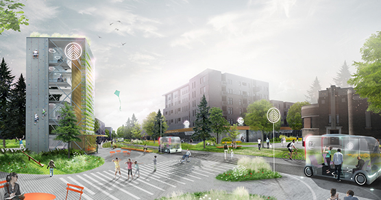 C’est l’équipe no.35 «CANO» qui a remporté la première place à la suite des délibérations du jury qui s’est réuni le 27 mars dernier. Le premier prix a tout de suite fait l’unanimité parmi les membres du jury: il s’agit d’un projet complexe qui a su porter la réflexion de l’espace urbain, de son transport et ce, en considération des quatre (4) saisons. Ce projet fait rêver à une ville meilleure et à une ville du futur qui ne serait pas si loin.