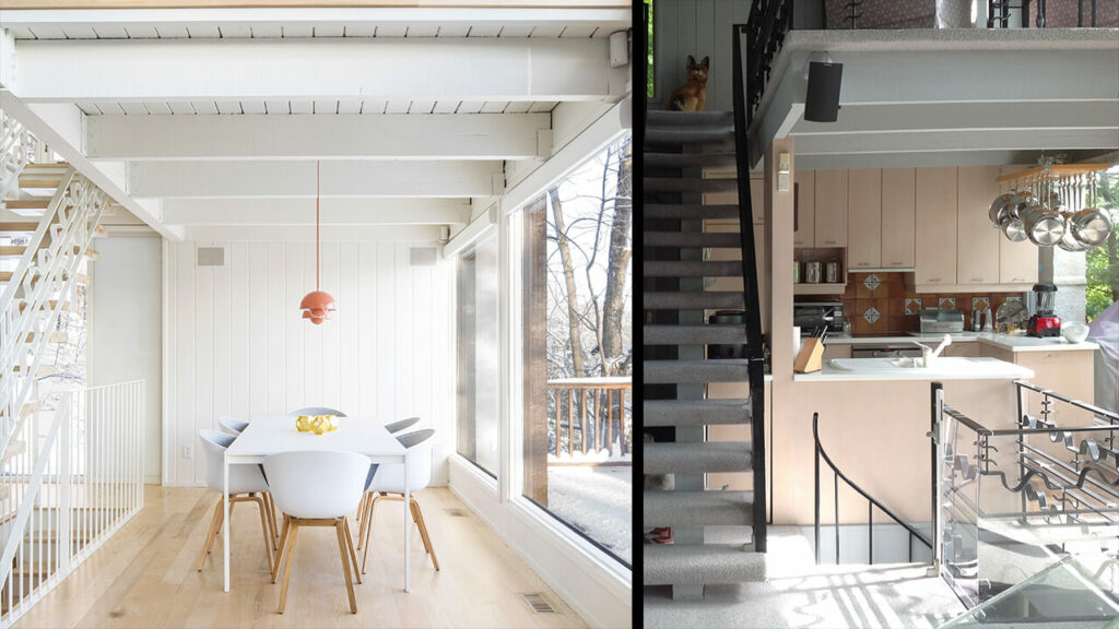 Originalement construite à la fin des années soixante, la maison présentait les traits de l’architecture scandinave de l’époque. À ce moment peu connue à l’international, cette tendance architecturale connaitra son essor grâce à des architectes tel Alvar Aalto (1898-1976), pour qui le respect du lieu, l’importance de la fonctionnalité et la matérialité seront les clés de la conception. Cette architecture, dite ‘’organique’’, disparue en raison d’une série d’interventions sur la demeure, se verra mise de l’avant dans cette transformation majeure.