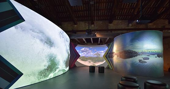 L’exposition présente les œuvres de 18 architectes et concepteurs autochtones de l’île de la Tortue (Canada et États-Unis) au moyen d’une expérience audiovisuelle immersive qui s’attaque aux dures réalités de la colonisation tout en abordant et en célébrant la puissante résilience des Autochtones.