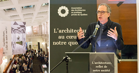 À l’occasion du cocktail annuel de l’AAPPQ, le 14 juin, plus de 150 personnes des milieux de l’architecture, du design et de la construction étaient réunies dans l’atrium de la Maison du Conseil des arts de Montréal pour découvrir le Manuel de référence 2018 de l’Association des Architectes en pratiques privée du Québec et les 25 projets publiés, célébrer Michel Labrecque, membre honorifique de cette année, et découvrir les lauréats du concours L’architecture engagée dans nos communautés, une affaire d’aluminium.