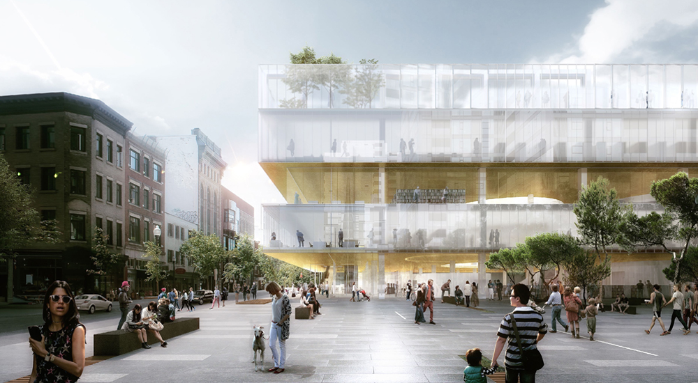 Le jury, présidé par Lise Bissonnette, a été très attentif à l’intégration de la nouvelle bibliothèque dans le quartier et à l’esthétique de l’enveloppe extérieure. Il a examiné l’organisation spatiale des neuf foyers thématiques et la clarté de la circulation au sein de l’édifice. La localisation et le traitement proposés pour la salle de diffusion ont également été des points importants. En revanche, la mise en valeur des espaces d’animation des foyers thématiques ne semble pas avoir été un élément aussi déterminant que le programme du concours le laissait entendre. »