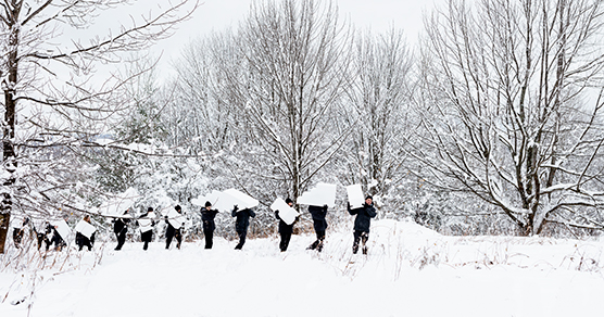 Installation performative multidisciplinaire par l’architecte Jean Verville, l’artiste KROY, le photographe Maxime Brouillet et les étudiants de l’atelier 3500A18JV