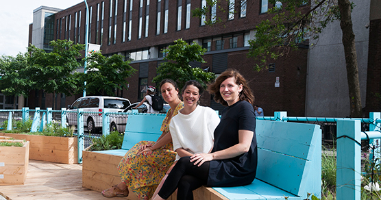 Le placottoir de la rue Parthenais s’inscrit dans le cadre d’un projet-pilote de l’arrondissement de Ville-Marie, qui offre à la population jusqu’à la fin octobre trois aménagements verdis dans trois quartiers :