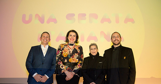DE GAUCHE À DROITE : Nicolas Chevrier, Président du Conseil d’administration du FIFA ; Silvia Costantini, Consule générale d’Italie Silvia Costantini ; l’architecte Phyllis Lambert, Directeur fondateur émérite du CCA, et Philippe U. del Drago, directeur général du FIFA.