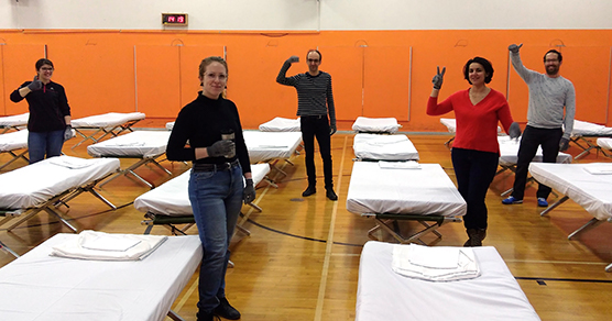 « Le 24 mars dernier, ASFQ a mobilisé 10 bénévoles de son réseau pour appuyer la Ville de Montréal dans l’aménagement d’urgence de deux espaces d’hébergement temporaire pour les sans-abri dans les YMCA Guy Favreau et Centre-ville. Grâce à leur aide généreuse, les quelques 200 lits permettront d’accueillir des personnes itinérantes plongés dans une fragilité sans précédent. En plus d’être exposés au risque de la maladie sans possibilité de pratiquer le confinement, la crise de la Covid-19 les prive de ressources essentielles et de services forcés de fermer ou de faire d’importants ajustements.