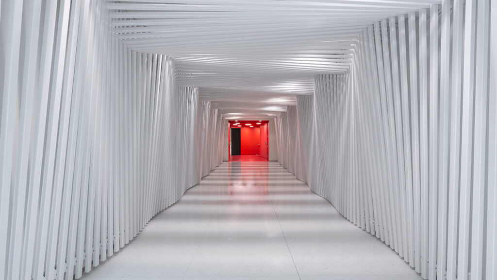 Bien que les références architecturales en lien avec le principe de promenade circulaire existent déjà (pensons notamment au Reichstag, en Allemagne, ou au Musée Guggenheim, à New York), son intégration sous terre, à même l’empreinte de l’emmarchement existant de l’Assemblée nationale, apporte une touche distinctive au projet. L’ajout d’espaces pédagogiques attenants vient également renforcer l’aspect programmatique.