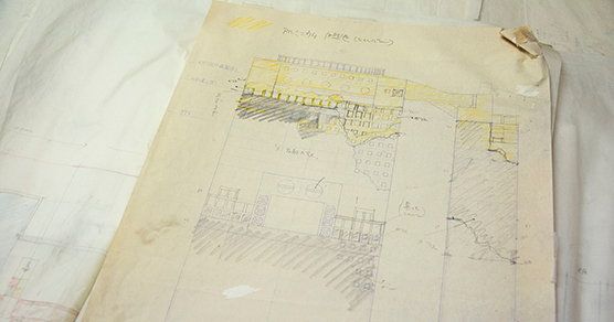 « L’agence de Hara, l’Atelier Φ, est située dans un quartier résidentiel paisible pas très loin de l’effervescente gare de Shibuya, à Tokyo, actuellement en réaménagement majeur. Lors de notre visite, Hara était en train de dessiner quelque chose sur une feuille de papier calque à sa table de travail. Il s’agissait d’une frise chronologique dessinée à la main représentant plusieurs dizaines de politiciens, révolutionnaires, philosophes, écrivains, scientifiques et technologues modernes et contemporains influents (fait intéressant : l’absence d’architectes) et les grands événements (guerres, révolutions, découvertes, innovations technologiques, etc.) auxquels ils sont associés. Hara a expliqué qu’il réalisait cette frise pour y concentrer la pensée inspirant ses concepts et ses recherches à l’ère de l’architecture postmoderniste. Il nous a confié qu’il relisait un certain nombre de textes pour pouvoir être en mesure d’analyser adéquatement le postmodernisme dans le contexte plus large de l’histoire mondiale, pas uniquement d’un point de vue architectural. » »