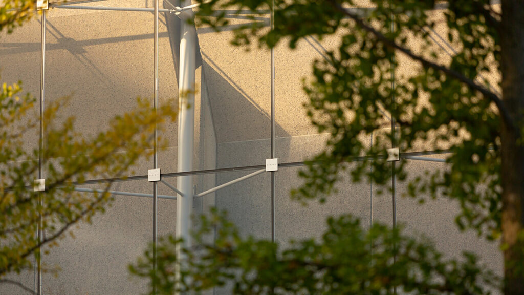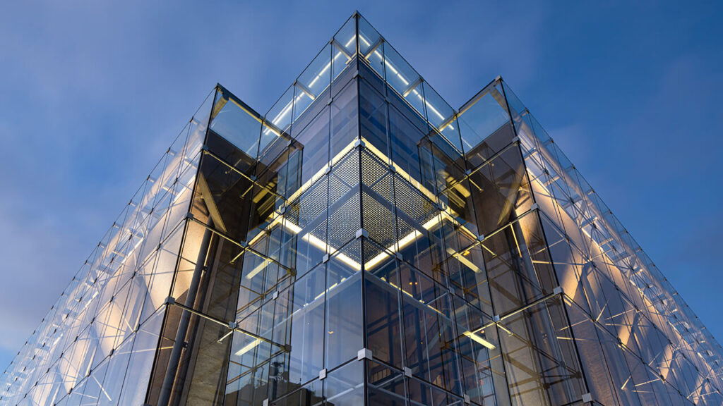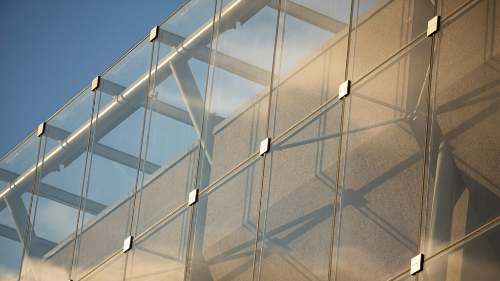 La structure d’acier, sur laquelle repose le verre, est le résultat d’une collaboration étroite et soutenue entre les architectes, les ingénieurs, les spécialistes de la construction et les fabricants. De la conception à la livraison, tous ont collaboré et relevé les nombreux défis de cet ambitieux projet. La nouvelle structure articule le projet de manière discrète et sensible. L’enveloppe peut sembler solide ou immatérielle selon la lumière, brouillant parfois les contours du bâtiment. En retour, elle protège le bâtiment des intempéries en créant une enveloppe tempérée tandis qu’un système de récupération de chaleur et de masse thermique à faible débit offre une solution écoénergétique et économique.