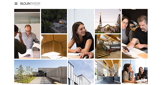 Au travers de mosaïques animées et vivantes, la nouvelle plateforme expose les réalisations les plus marquantes des dernières années non seulement dans la section qui leur est dédiée, mais également dans les portraits des employé(e)s. Très fière des passionné(e)s d’architecture qui la composent, la firme présente chacun des individus faisant partie prenante du succès et de la singularité identitaire de l’équipe. Chaque technologue, diplômé(e), architecte et associé(e) partage son parcours personnel et professionnel ainsi qu’un témoignage d’une implication marquante au sein de Blouin Tardif Architectes.