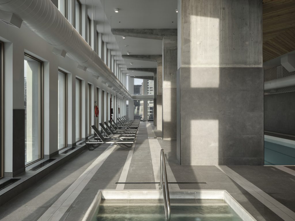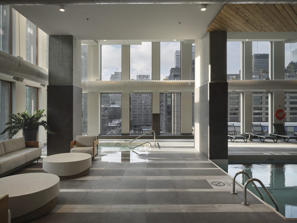 Le 900 Saint-Jacques propose une conception de l’habitat où la collectivité constitue un élément central d’un cadre de vie complet. La configuration du projet a été pensée pour favoriser les interactions, multipliant les espaces communs et créant des lieux de rencontre accessibles tant aux résidents qu’aux visiteurs de l’hôtel Moxy.