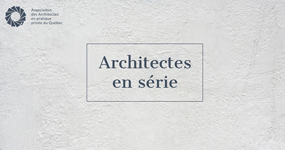 « Montréal, le 6 novembre 2020 – L’Association des Architectes en pratique privée du Québec (AAPPQ) est très fière de dévoiler le premier épisode d’une nouvelle série web qui vise à mieux comprendre le travail des architectes. Intitulée Architectes en série, elle se décline en cinq épisodes qui seront dévoilés chaque vendredi sur sa page Facebook et sa chaîne YouTube. Le premier épisode est disponible dès aujourd’hui.