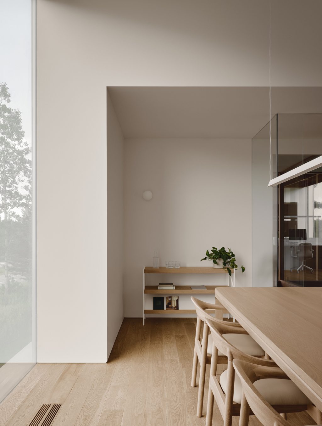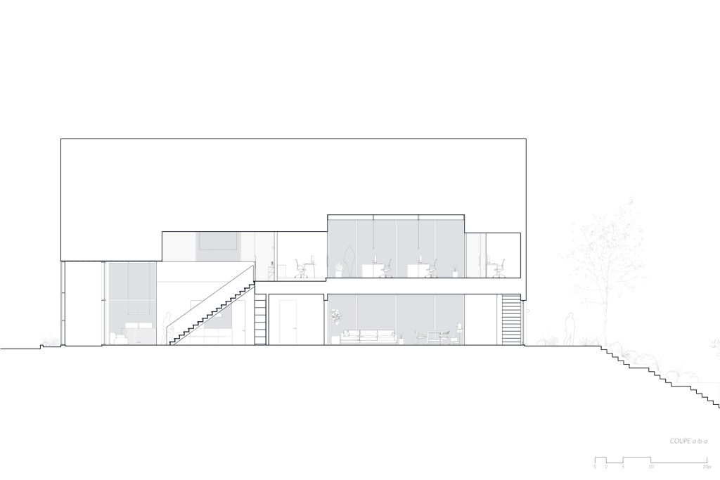 Finesse, simplicité, sensibilité… Plusieurs qualificatifs viennent en tête lorsqu’on analyse cette réalisation, qui peut porter à confusion à première vue. Non, il ne s’agit pas de résidences : ce sont les espaces de travail de la firme d’architecture et de son pendant en construction.