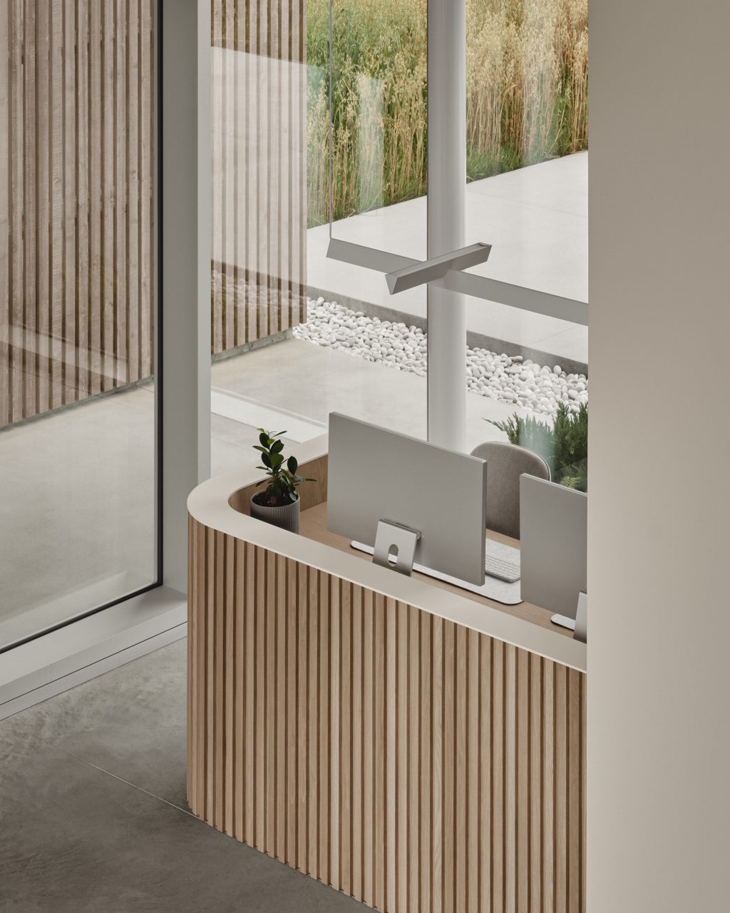 Les détails, comme les poutres apparentes ou les caissons de bibliothèque revêtus de tissus ne sont pas simplement décoratifs. Ils participent à une expérience tactile et acoustique, offrant douceur et sérénité aux espaces de travail.