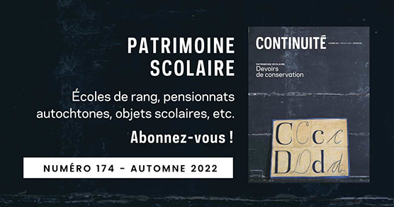 « Cet automne, Continuité vous fait découvrir des objets éducatifs, des bâtiments scolaires restaurés, des écoles de rang ouvertes au public, et plus encore !