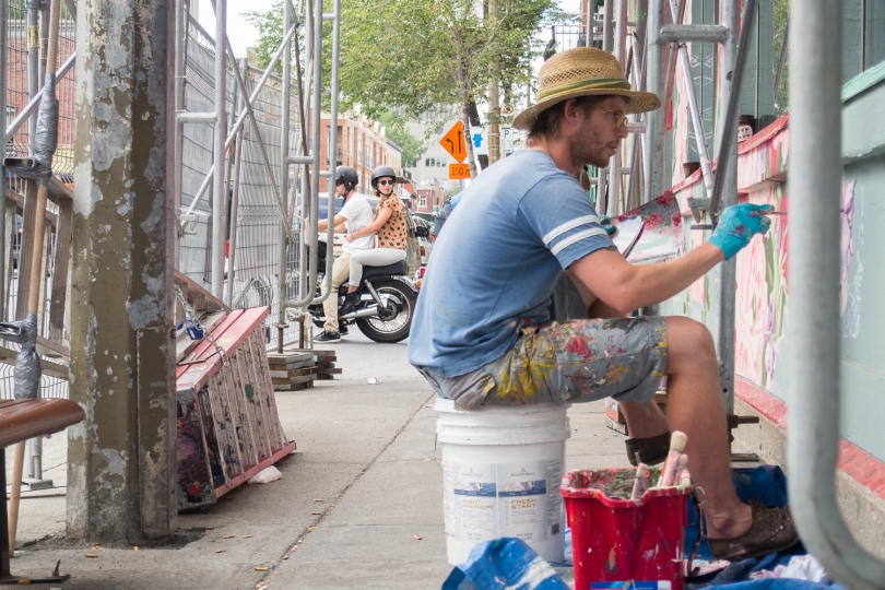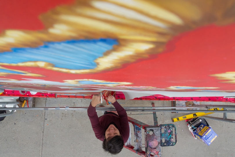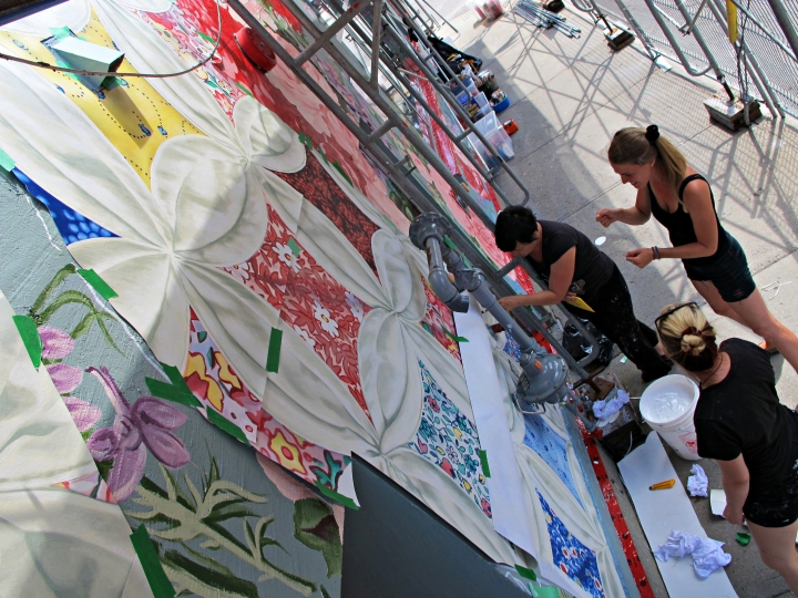 L’œuvre a été réalisée par la muraliste Annie Hamel et une équipe de 6 apprentis.