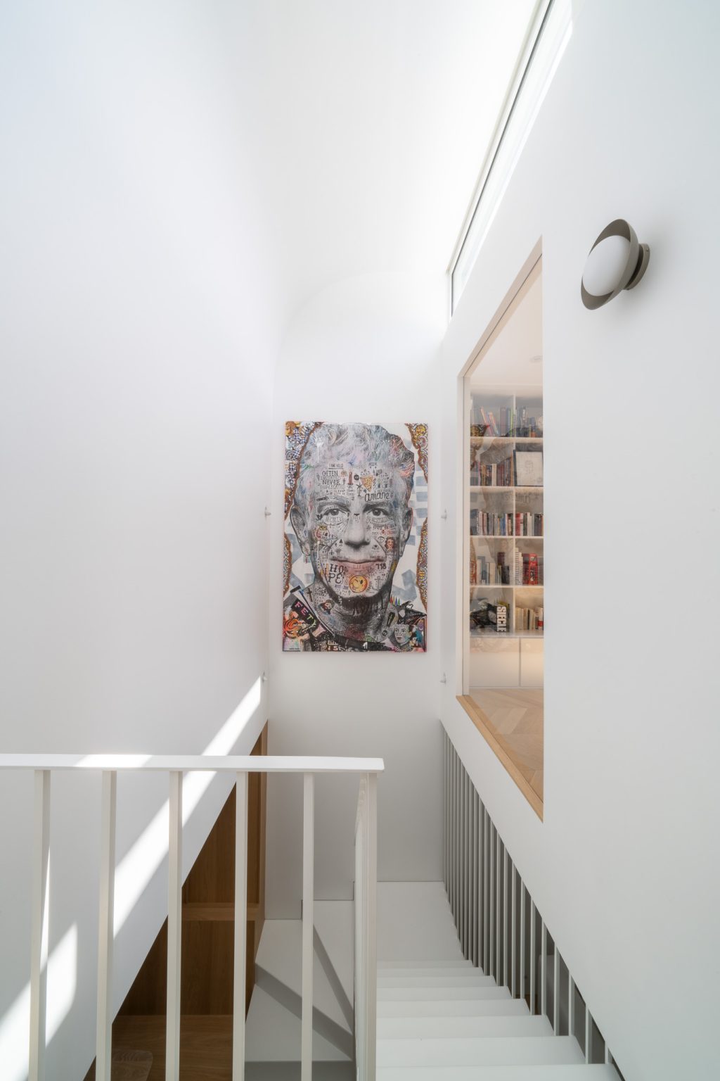Le projet est conçu pour un couple passionné d’architecture et d’art, dont l’intégration judicieuse de nombreux tableaux faisait partie intégrante du mandat de l’architecte. Le souhait du client était avant tout de créer un lieu de vie unique, stimulant et submergé de lumière naturelle. Créer une oasis de paix à même l’activité urbaine de ce quartier grouillant de vie était aussi une requête du client.