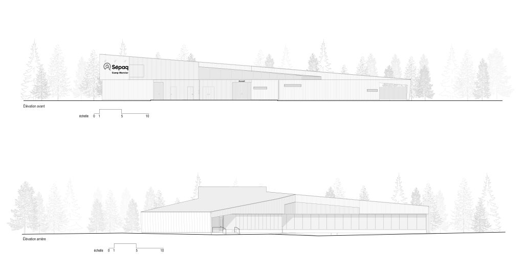 En 2018, des études menées par la Société des établissements de plein air du Québec (SEPAQ) ont confirmé que l’ancien pavillon d’accueil avait atteint sa fin de vie utile. Anne Carrier architecture a alors été mandatée pour concevoir un nouveau pavillon fonctionnel, durable et accessible, en remplacement de l’ancien camp forestier servant jusqu’alors pour l’accueil.
