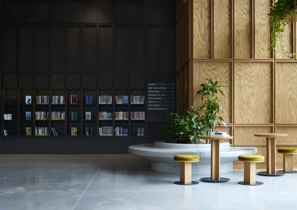 Dès l’entrée, on découvre un tiers-lieu d’une richesse insoupçonnée : des matériaux soigneusement choisis, une convivialité immédiate, et surtout, un regard architectural renouvelé sur ce type d’équipement public.