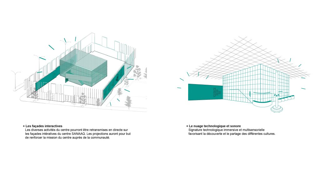 Le Centre Sanaaq est un territoire d’apprentissage, d’échange et d’expériences. Un territoire vivant qui transgresse les limites du centre culturel et communautaire traditionnel en offrant un programme actif et participatif audacieux. Inspiré par le nom qu’il porte — la racine sana, qui signifie créer, œuvrer, sculpter, travailler — le centre favorise l’émergence de l’idée de « fabrication collective » à travers la création et le partage communautaire. À la fois accessible et novateur, grand public et pointu, chaleureux et radical, low-tech et hi-tech, le Centre est un véritable laboratoire d’innovation publique, qui place l’humain au cœur de ses actions.