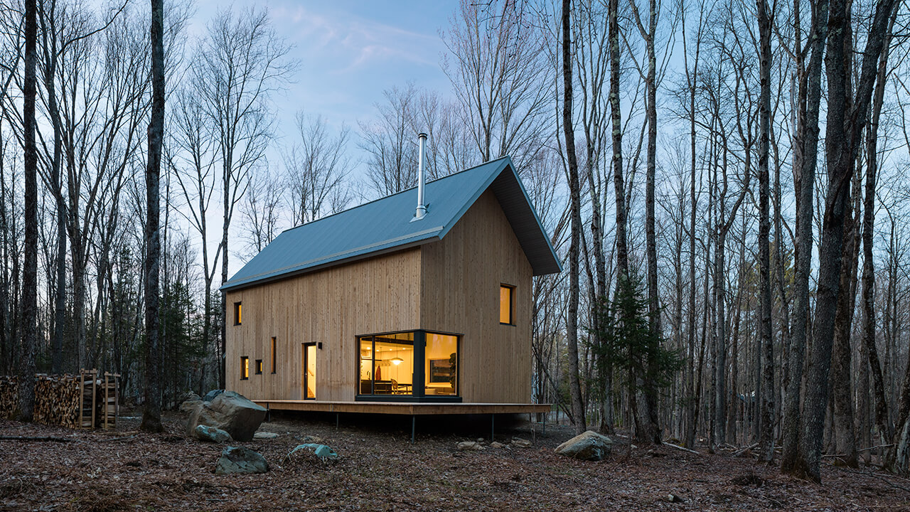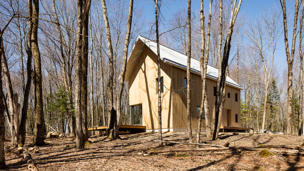 À Lac-Brome, au cœur d’une clairière naturelle est né le chalet Pics-Bois. Le projet tire sa force de l’observation du site et d’une analyse d’implantation sensible à la préservation stratégique d’arbres inspirants.