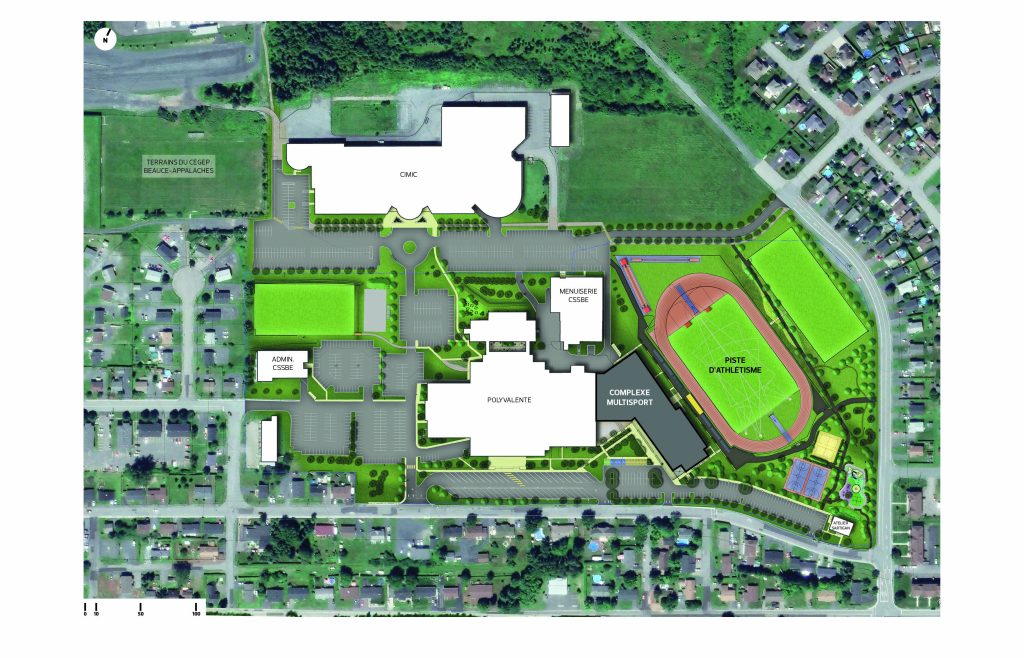 L’implantation du Complexe multisport sur le site de l’école secondaire le positionne avantageusement dans le pôle d’éducation et de formation de la municipalité. À proximité du Cégep de Beauce-Appalaches, du Centre de services scolaire de la Beauce-Etchemin, du Centre de formation professionnelle et de la Polyvalente de Saint-Georges, le nouveau Complexe multisport s’implante au cœur des habitudes des Georgien.nes, du côté nord-est de l’école secondaire.