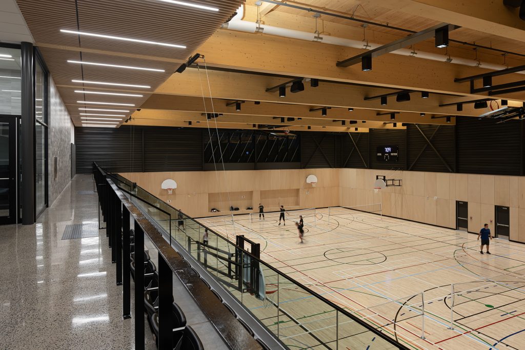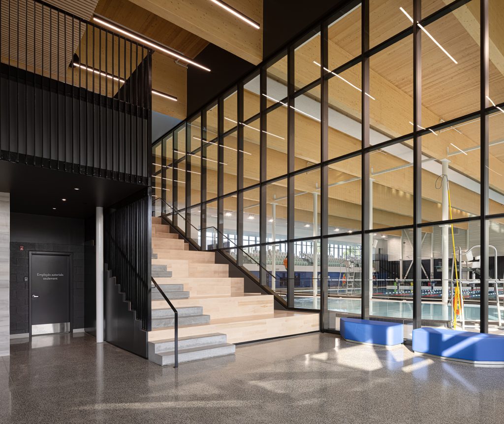 La qualité architecturale passe inévitablement par l’appréciation des usager.ère.s d’un lieu, particulièrement lorsqu’il s’agit d’un bâtiment public. L’expérience doit primer sur les grands gestes architecturaux. C’est notamment pourquoi ce complexe sportif a retenu notre attention, ayant remporté le Prix du public 2024 lors des Prix d’excellence de l’Ordre des architectes du Québec.