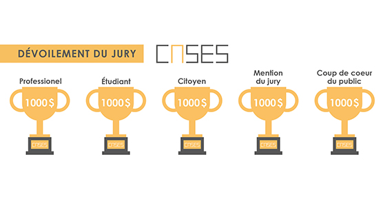 « Le Conseil régional de l’environnement de Montréal vous dévoile aujourd’hui les cinq membres qui composeront le jury du concours CASES et qui auront la tâche privilégiée de sélectionner quatre concepts gagnants, soit un pour chaque catégorie Professionnel, Étudiant et Citoyen ainsi que le prix Mention du jury sélectionné parmi toutes catégories confondues. Outre les gagnants décernés par le jury, le public aura la chance de voter pour son concept préféré parmi toutes les candidatures soumises via le site web de CASES, le concept ayant récolté le plus de votes se méritera le prix Coup de cœur du public. Restez à l’affût de nos plateformes Facebook, Twitter et Instagram pour connaître la période d’ouverture du vote.