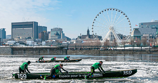 Un rendez-vous montréalais incontournable; les courses de canot sur glace.