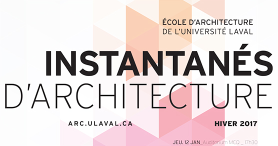 « L’École d’architecture de l’Université Laval a le plaisir d’annoncer la programmation Hiver 2017 de la série de conférences « Instantanés d’architecture ». Ces conférences sont ouvertes à tous : nous espérons vous y voir en grand nombre!