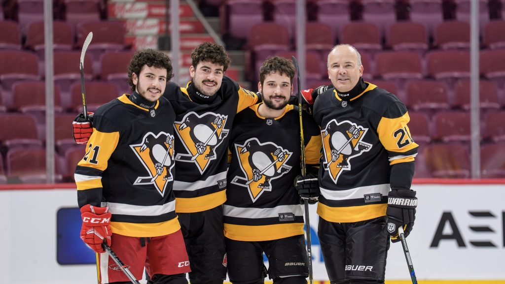 Pour les enfants, l’événement fut animé par Youppi! et la Panthère Rose, tandis que pour les joueurs, l’ancien du Canadiens de Montréal Dave Morissette a généreusement offert des encouragements et des petits conseils lors des matchs. Cette édition 2025 fut également une belle opportunité de souligner la courte mais brillante carrière de l’ancienne recrue étoile des Penguins de Pittsburgh Michel Brière dont un documentaire a été réalisé il y a quelques années. Son fils, l’architecte Martin Brière, associé principal chez BGLA architecture + design urbain a eu l’opportunité de revêtir un chandail des Penguins avec le numéro 21 de son père, et surtout, de jouer en compagnie de ses trois fils lors du 2e match.