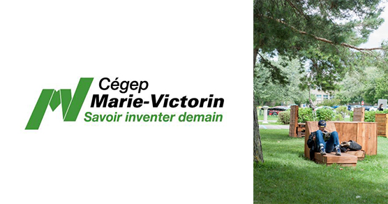 « Montréal, le 13 septembre 2017 – Le Cégep Marie-Victorin a inauguré, cet automne, de nouvelles aires de repos devant le pavillon Champagnat. Ces modules ont été entièrement réalisés par des étudiantes dans le cadre d’un cours de première année en Design d’intérieur. L’objectif était de penser et de créer des modules à partir de bois récupéré de sorte à s’initier aux matériaux en explorant, manipulant et en assemblant.