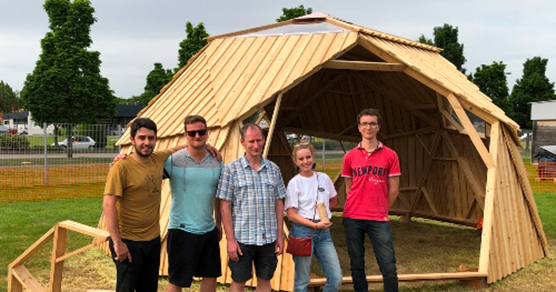 Quatre étudiants en génie civil de l’Université du Québec à Chicoutimi (UQAC) – Arthur Beck, Lucie Pamart, Étienne Gauthier Turcotte et Jonathan Audet Croft – se sont brillamment illustrés lors de la 14e édition des Défis du bois 3.0 qui s’est tenu du 19 au 26 mai dernier dans les Vosges, dans l’Est de la France. Ce concours, organisé par des enseignants en architecture et en génie du bois de l’ENSarchitecture de Nancy et de l’ENSTIB d’Épinal, permet aux étudiants de vivre une expérience de travail collectif par la construction de structures en bois. »