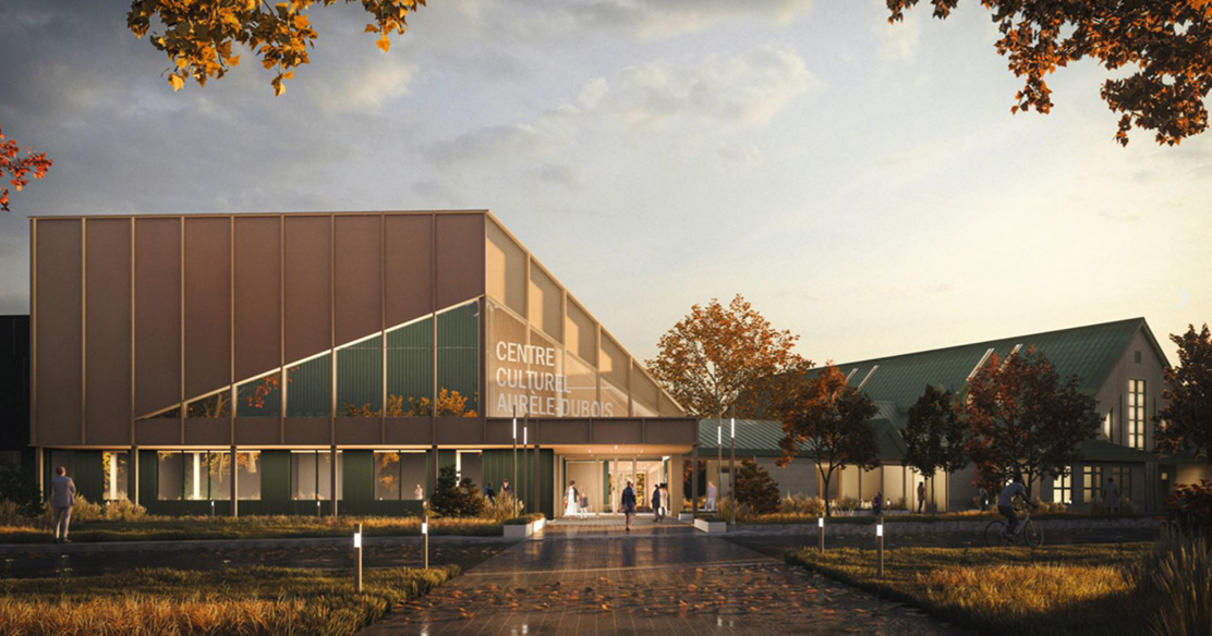 À la manière d’une grande traversée entre le parc et la rivière, le projet propose un parcours central structurant, qui vise une organisation fluide des multiples fonctions au programme. Le concept vise à favoriser les rencontres : la rencontre avec l’urbanité et le parc, la rencontre avec le cœur du projet, la rencontre avec l’autre, la rencontre avec la connaissance et la rencontre avec la grandeur du paysage. Le concept de l’espace culturel Aurèle-Dubois comprendra l’agrandissement de la bibliothèque municipale afin d’augmenter sa superficie de plancher et le réaménagement des espaces. Le centre culturel sera aussi réaménagé et agrandi afin de se doter d’un équipement de diffusion professionnel et multidisciplinaire. Il est également prévu d’aménager de nouveaux locaux pour accueillir des espaces de création, de production et diffusion pour l’enfance et la jeunesse, et mutualiser les espaces disponibles afin de créer une meilleure utilisation et synergie entre les différents partenaires. »