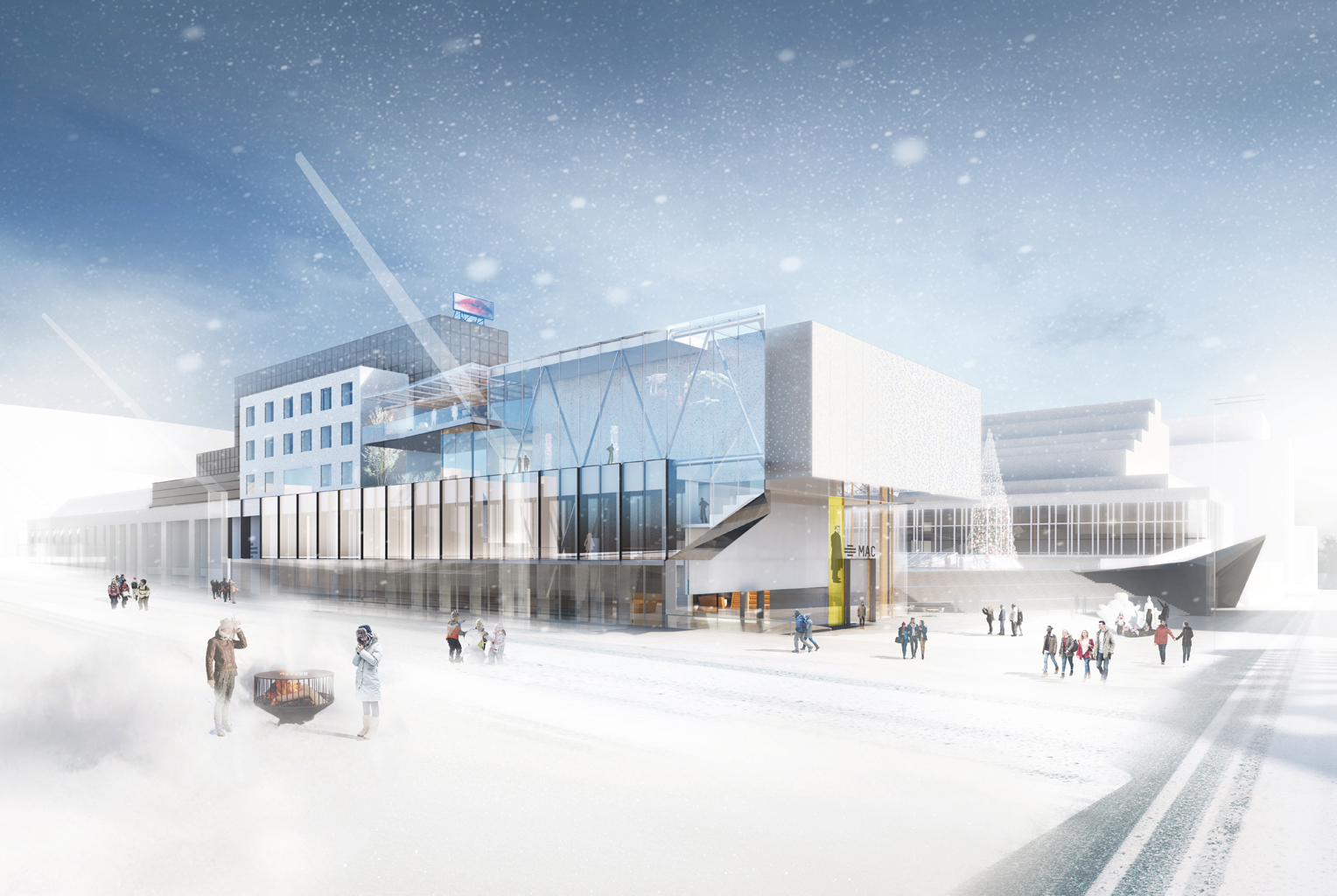 DE GAUCHE À DROITE: Proposition lauréate du consortium Saucier + Perrotte et GLCRM architectes | Proposition finaliste d’Atelier Big City + FSA architecture | Proposition finaliste du consortium DHA + NFOE architectes | Proposition finaliste de Provencher Roy + Associés architectes