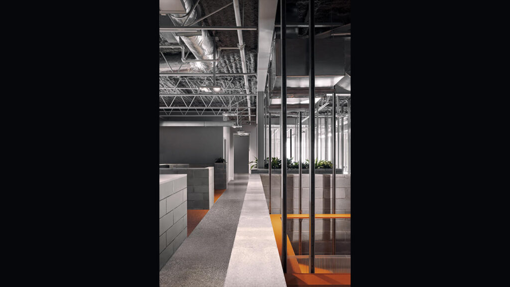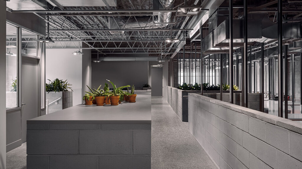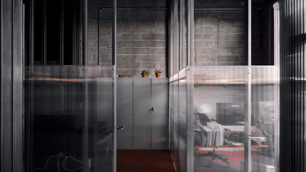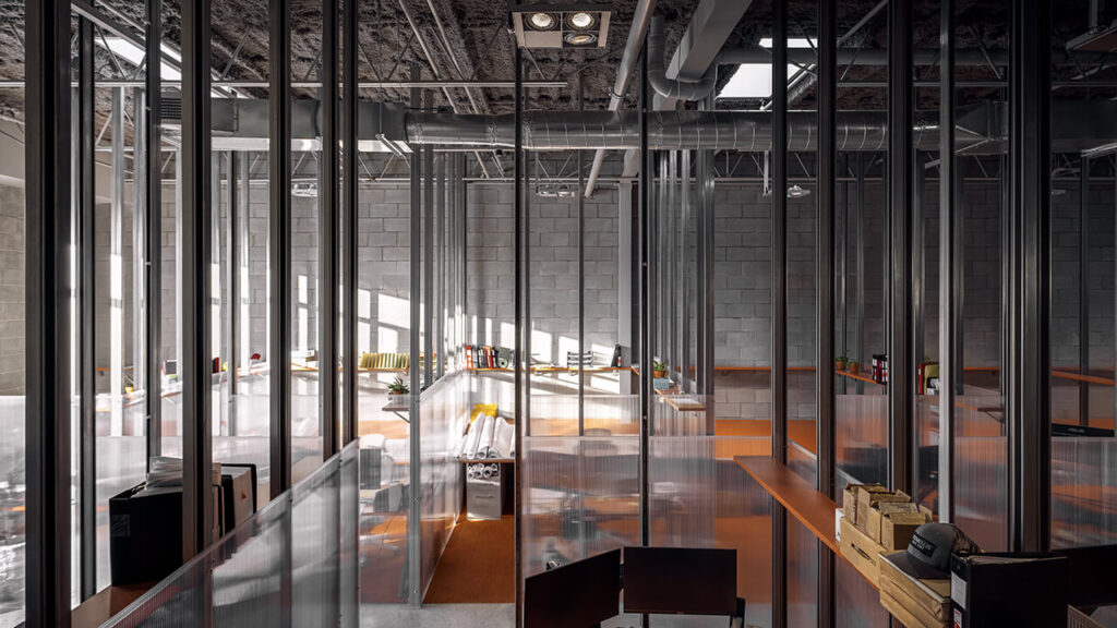 Soulignons également le contrôle habile de la lumière, maximisé par une matérialité qui permet de diviser l’espace dans un contexte post-pandémique sans pour autant créer un effet oppressant pour le travailleur.
