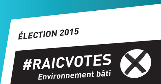 « Quelles questions portant sur l’architecture ou le design urbain aimeriez-vous voir discutées dans l’arène politique cet automne? Dites-le-nous sur notre site Twitter à #RAICVOTES.