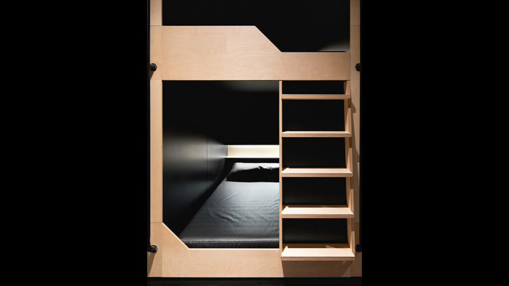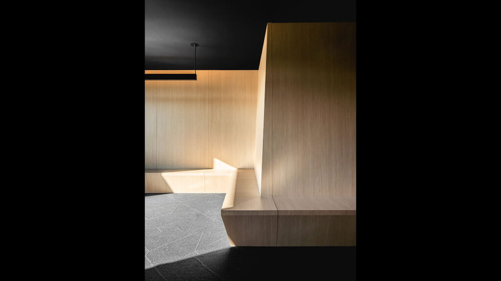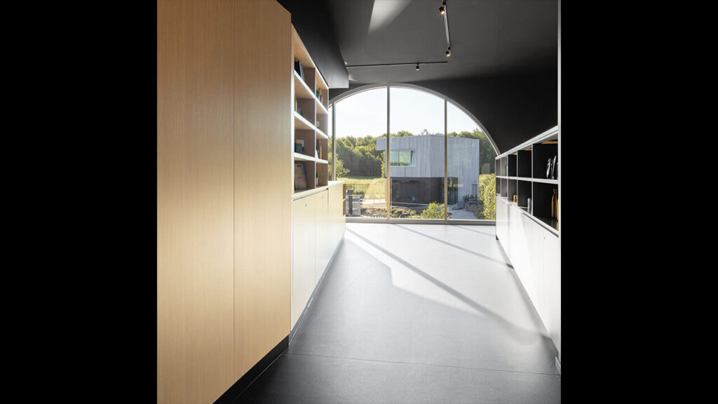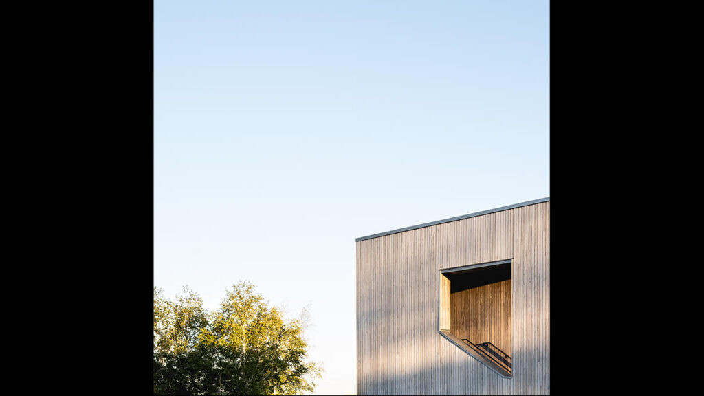 Ponctués d’un hublot dès l’accueil et ciselés d’ouvertures aux géométries franches, les pavillons deviennent des médiums de connexion à l’environnement et participent à créer un lieu confortable où lumière naturelle, ventilation naturelle et superbes points de vue forment des incontournables au sentiment d’interaction avec le paysage.