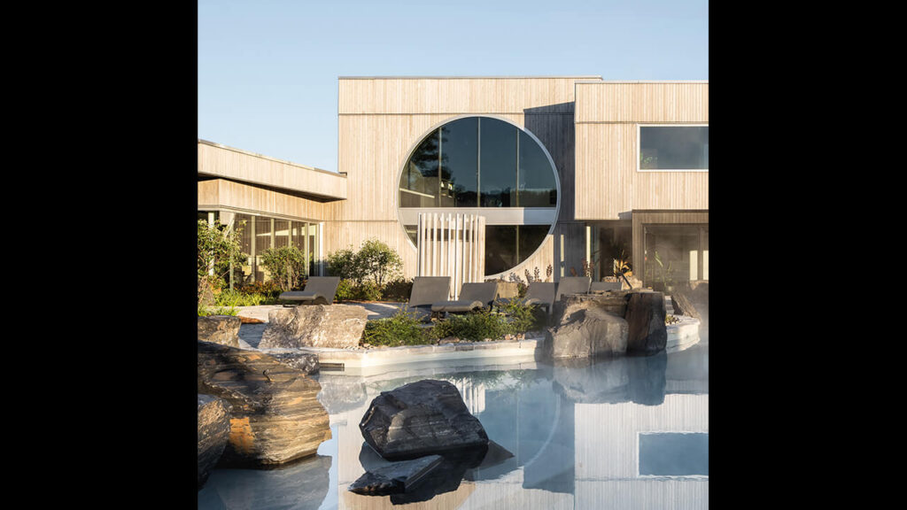 Récemment primée par l’Ordre des architectes et les Grands Prix du Design, cette installation thermale a de quoi attirer le regard.