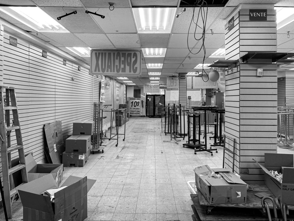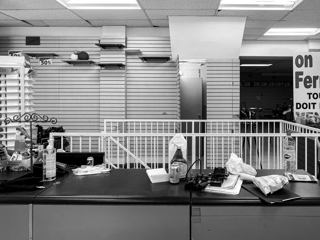 Comme dans l’épicerie sur la rue Villeray, les caisses de Fraîchement Bon Jarry sont éclairées par les luminaires de Studio Botté, une compagnie locale dont chaque création est faite à partir de matériaux récupérés à Montréal.