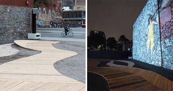 « Le 11 septembre 2020 – Quatre finissantes du Diplôme d’études supérieures en design d’événements de l’Université du Québec à Montréal (UQAM), Mégan Dorigo, Aurélie Martel, Audrey Sambeau et Mireille Simard, proposent à partir d’aujourd’hui jusqu’à la fin oc-tobre l’installation RESSAC dans l’espace public adjacent à l’édicule de la station de métro Saint-Laurent.