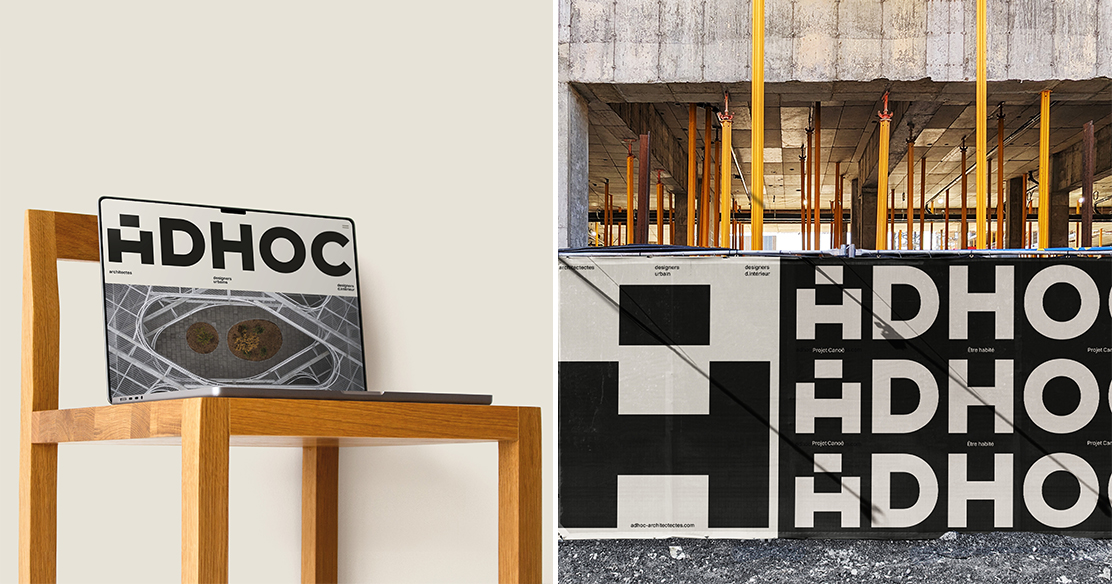 En résulte une identité inspirée par la matière, qui en impose par son assurance et une entreprise qui se distingue non seulement par sa crédibilité mais par sa pluridisciplinarité, en misant désormais sur une énumération des grands services plutôt que sur un descripteur fixe. ADHOC architectes devient ainsi ADHOC.
