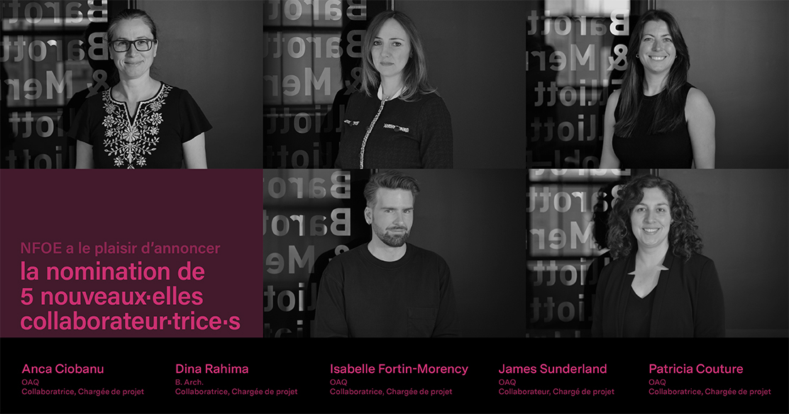 Afin de soutenir son expansion notable des dernières années et de saluer l’engagement et l’expertise de certain·e·s, NFOE est fière de compter parmi son équipe d’actionnaires cinq nouveaux·elles collaborateur·trice·s :