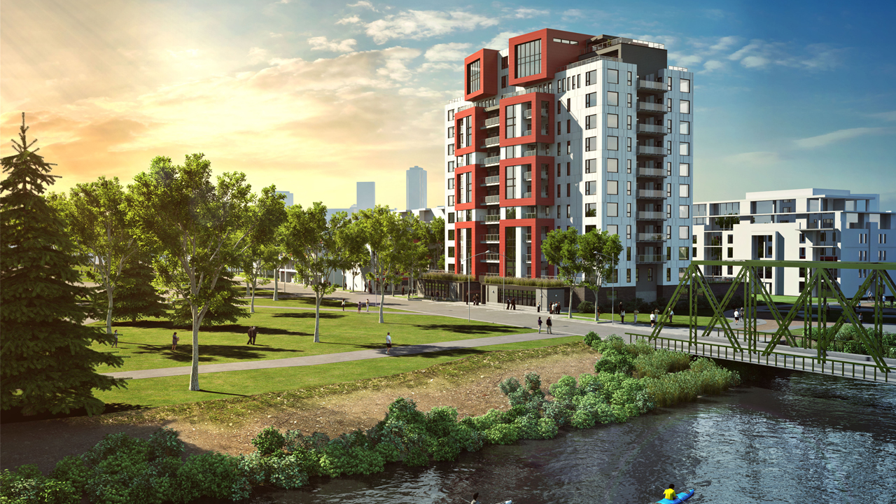 Le projet Origine a été dévoilé la semaine dernière en compagnie du maire Régis Labeaume. Chapeauté par le constructeur EBC, Nordic Structures Bois, le promoteur Synchro et l’architecte Yvan Blouin, cet édifice résidentiel de 13 étages s’emparera du titre de la plus haute tour en bois massif en Amérique du Nord.
